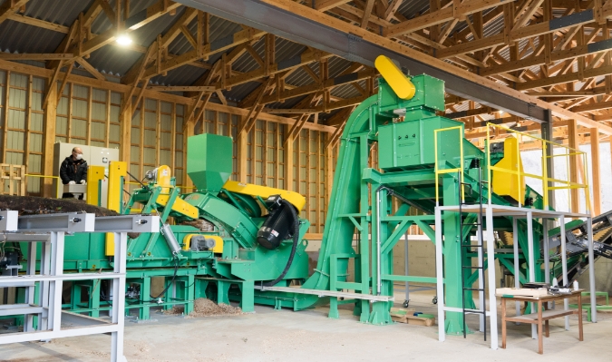 鳩野建設では、長年培った菌床用ザラメチップの製造ノウハウを活かし、新たにバイオマス燃料用の木材チップ製造を開始します。